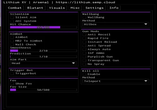 Dominate the chaos in Arsenal, the ultimate fast-paced Roblox FPS where every weapon keeps you on your toes! Race through a wild arsenal of guns, from bazookas to spellbooks, and outshoot opponents in unpredictable battles. With Silent Aim, Aimbot, and Wallbang, your shots never miss. ESP Players reveals enemy positions, while Anti Recoil, Rapid Fire, Instant Reload, Anti Spread, and Inf Ammo make you unstoppable. No Spray, Kill All Players, and Triggerbot ensure total domination. Will you be the last one standing?