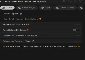 Bring justice to Robloxia in Armless Detective! This powerful script gives you the ultimate investigative edge with Evidence ESP and Player ESP to solve every case instantly. An autofarm handles your work, while a walkspeed and jump power modifier lets you navigate with ease. Master your magic hat and become the most effective armless detective