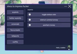 Functions: Auto Win Rounds, Auto Find Best Outfit, Auto Vote, Unlock All Items, Infinite Currency, WalkSpeed, JumpPower, Fly, No Clip, ESP Players, Anti-AFK