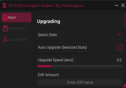 Forge your legend in Dungeon Raiders, the ultimate Roblox adventure! Choose from three powerful classes, explore treacherous dungeons, and defeat fearsome bosses to uncover legendary loot and hidden secrets. Ride majestic mounts, flaunt exclusive cosmetics, and travel with loyal pets. With Auto Stats, Auto Upgrade, Autofarm Mobs, Walkspeed Modifier, and Jump Power Modifier, your quest for glory is unstoppable. Will you emerge as a dungeon master?