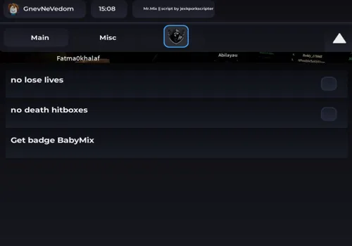 Functions: No Lose Lives, No Obstacles, Get Babymix Badge, Inf Jump, Speedhack, Kill all