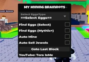 Hatch Brainrots from Common to Exotic in My Mining Brainrots! Your Brainrots mine and sell gems for money, allowing you to mine for better eggs and upgrade your base. With auto-find and collect any eggs, auto-mine, auto-sell jewels, and teleport to the last block, your mining operation is fully automated for endless profit and progression.
