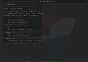 Create a Factory script pastebin. Functions: INF Money, Inf moon coins, Get all machines, complete all quests. Works on mobile: Arceus X, Delta X, Solara