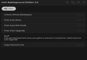 Units Battlegrounds script pastebin. Functions: Unlock Whole Battlepass, Free auto retry, Free auto roll, Auto Upgrade. Works on mobile: Arceus X, Delta X, Solara