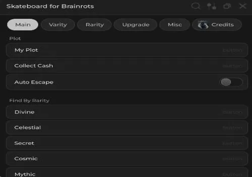 - Auto Get Rare Brainrots: Automatically targets and retrieves the most powerful items on the map, including Divine, Celestial, Secret, and Cosmic brainrots, for maximum profit per run.