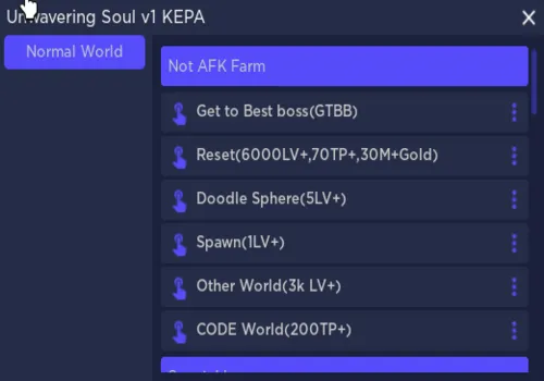 Functions: Get to best boss, Reset, Doodle Sphere, Spawn, Other World, Code world & more